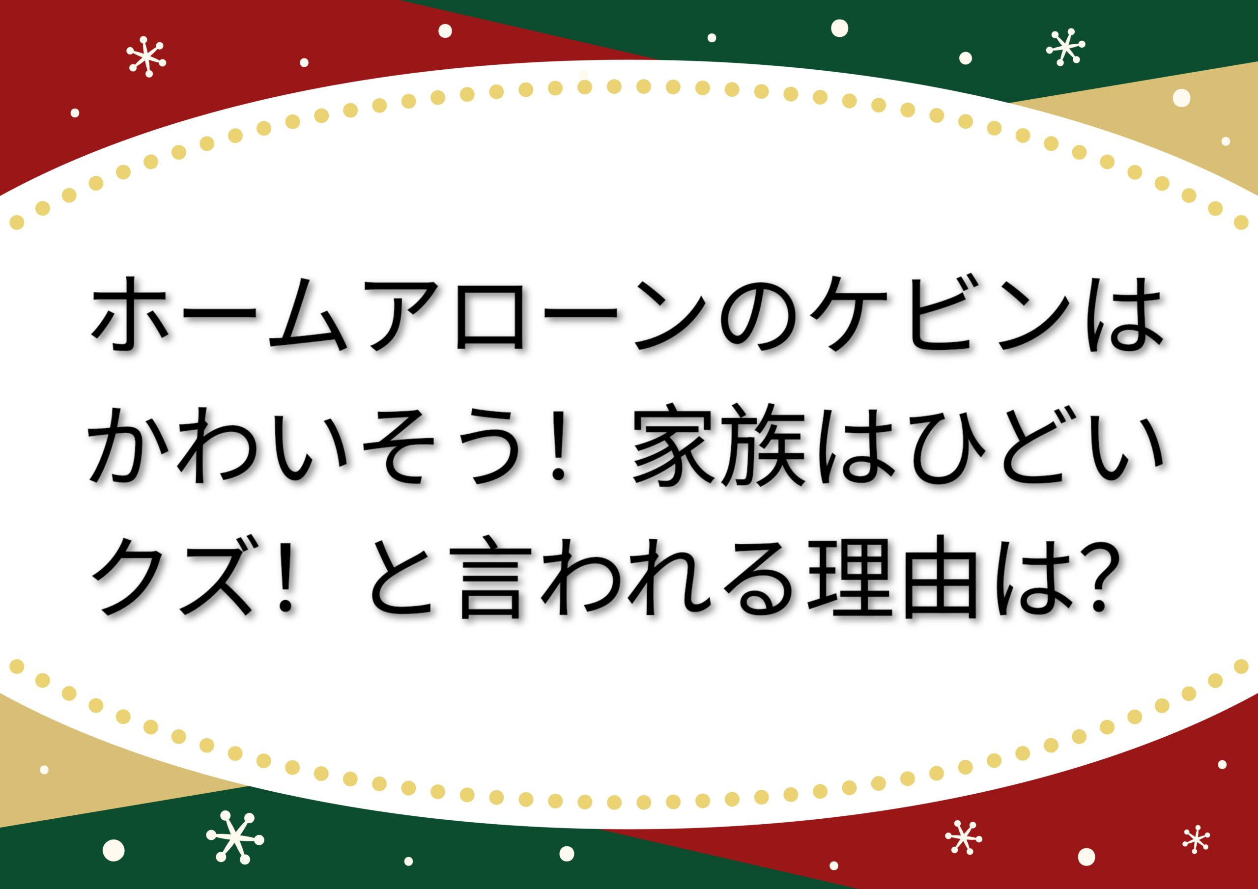 ホーム・アローンの家族がクズって言われている理由をまとめてみますね。