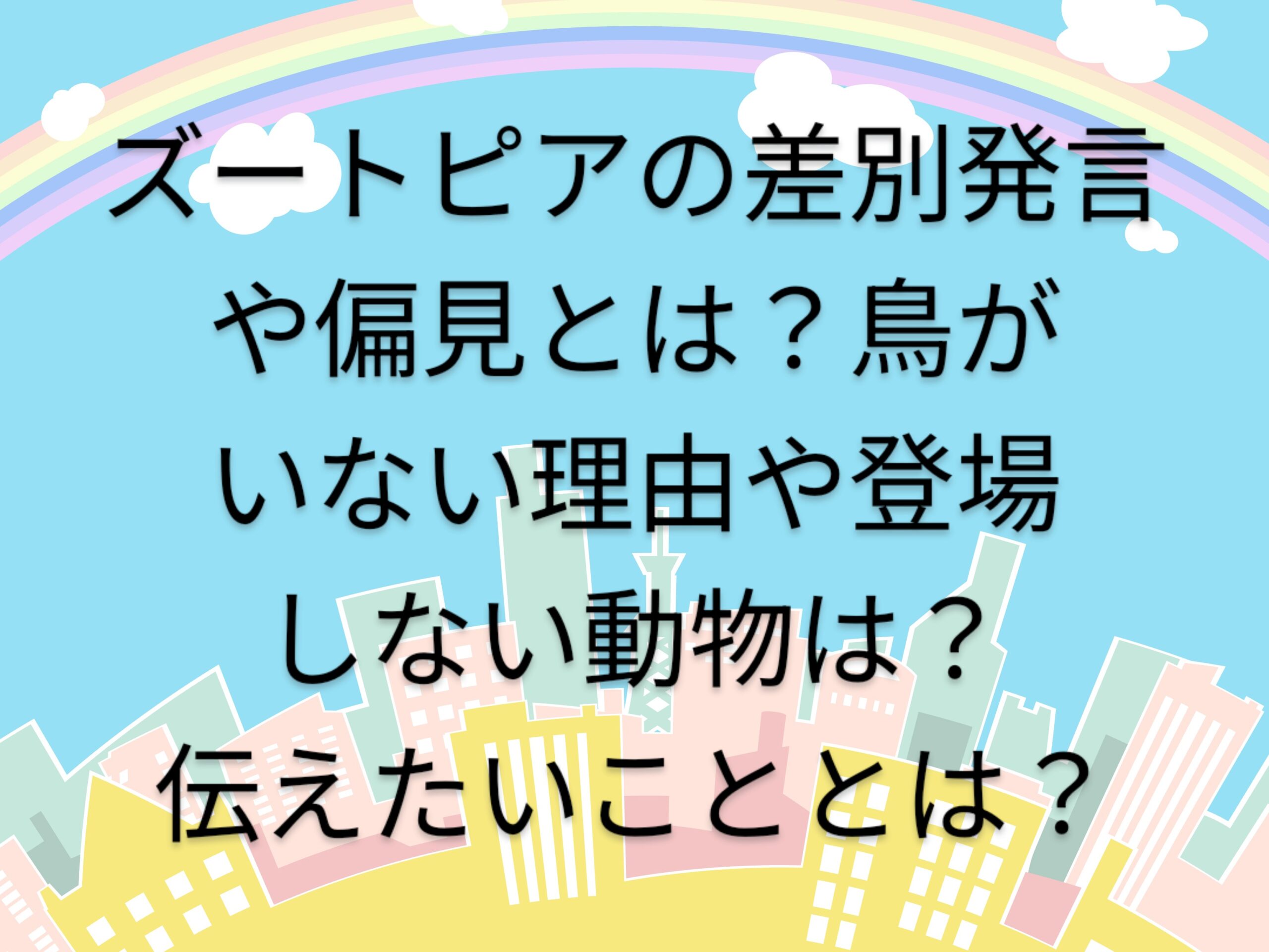 ズートピアの差別発言や偏見とは?鳥がいない理由や登場しない動物は?伝えたいこととは?